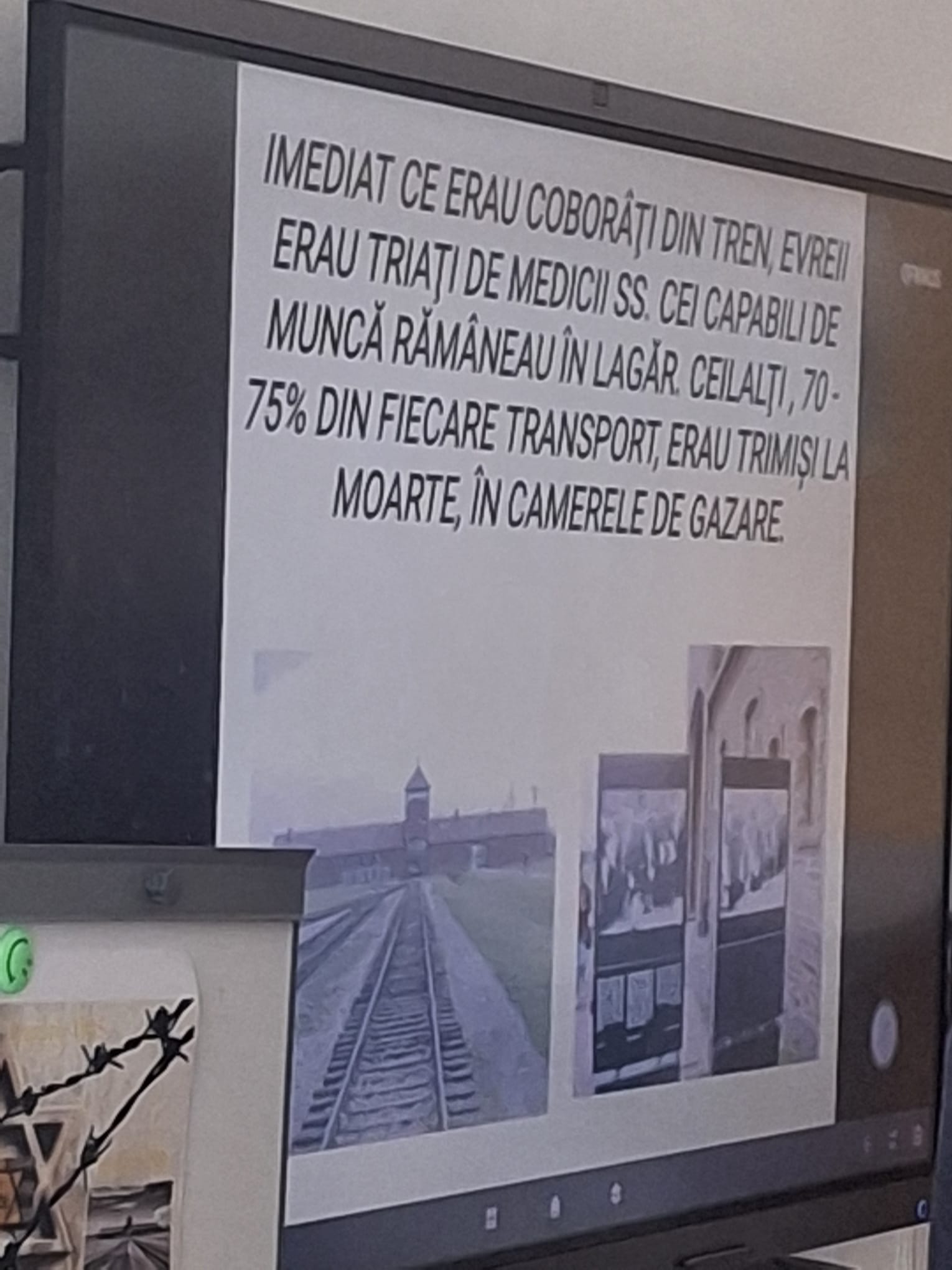 Cu ocazia Zilei de Comemorare Internațională a Victimelor Holocausului să ne aducem aminte de milioane de vieți omenești jerfite pentru ca generația următoare, inclusiv noastră, să poată să trăiască in pace. Importanța păstrării memorie rămâne fundamentală pentru consolidarea identității naționale. Împreună cu doamna profesoară Loredana Leleșan si elevii din clasa a șaptea și a opta am adus in prim plan o parte din ororarile petrecute in lagărului de la Auschwitz- Birkenau . Am păstrat un moment de reculegere in memoria victimelor. |