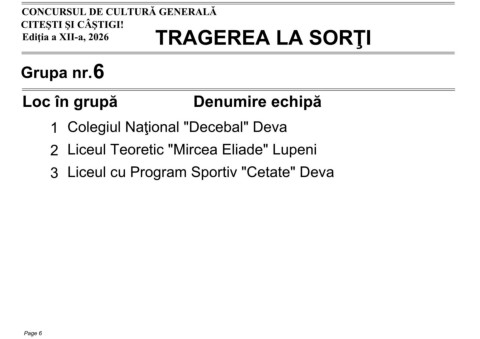 Ediţia a XII-a, 2026 TRAGEREA LA SORŢI