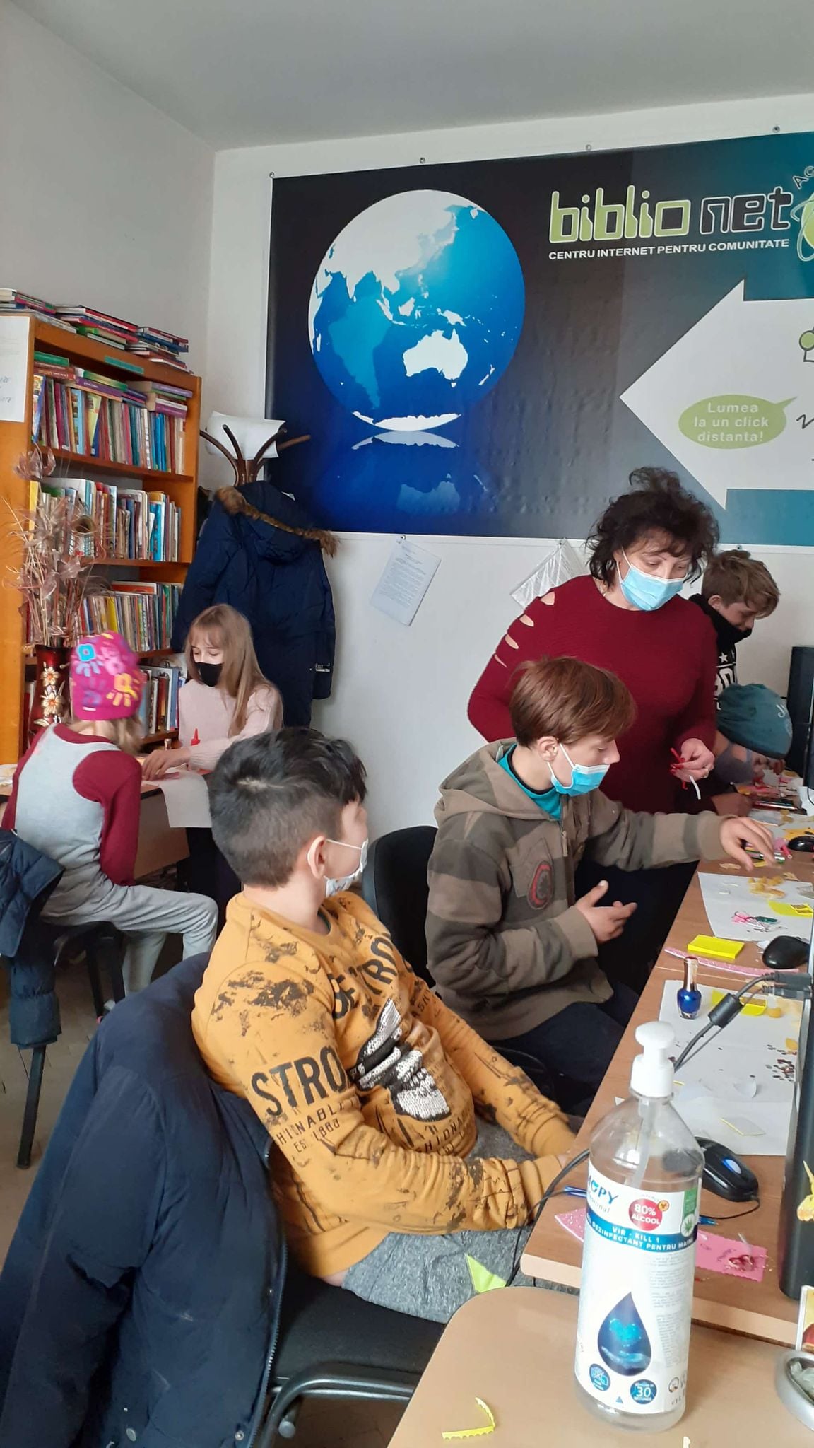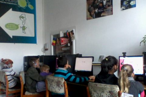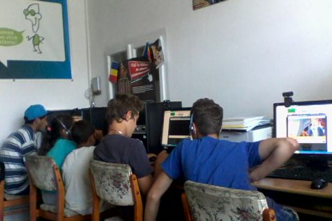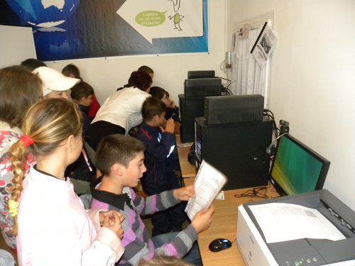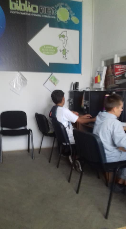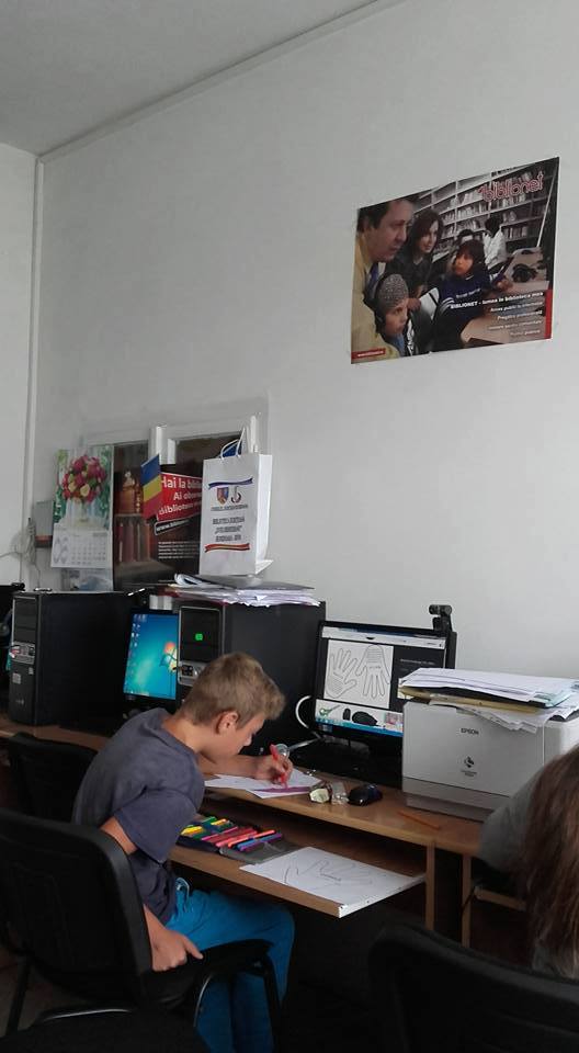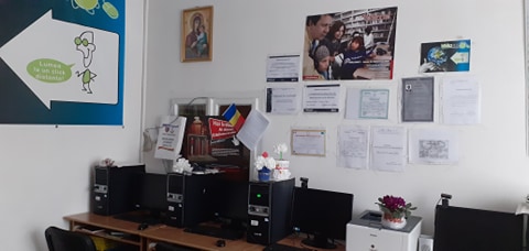 biblioteca și dotat cu 4 calculatoare, imprimantă, scanner, videoproiector