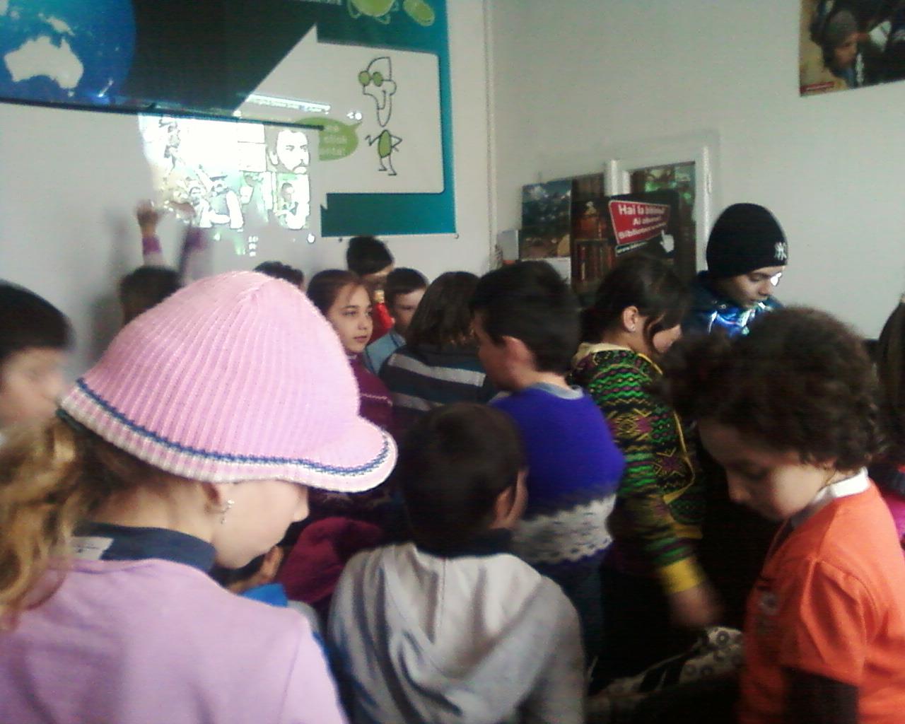 sediul bibliotecii și au participat elevi din clasele gimnaziale ai școlii