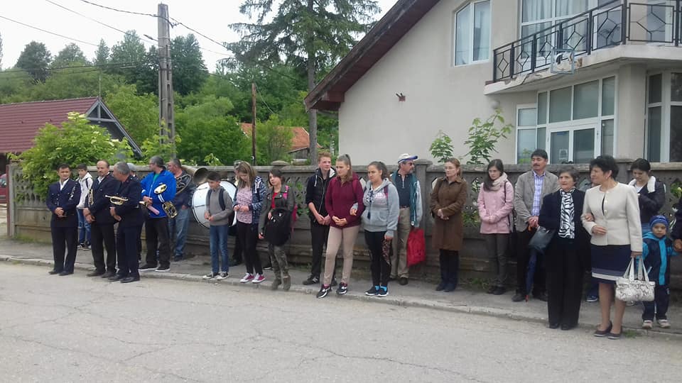 Ghelari, fanfara și locuitori ai comunei. |