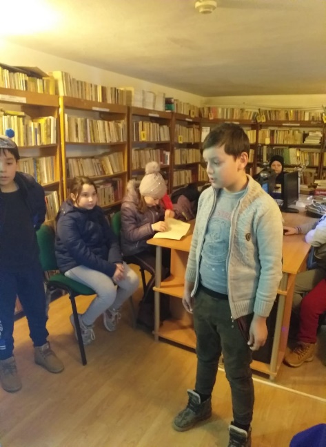 Acțiunea s-a desfășurat la sediul bibliotecii cu învățătorul și elevii școlii generale din comună, lecturând împreună fragmente din povești și poezii îndrăgite, participând și elevi din clasele mai mari. |