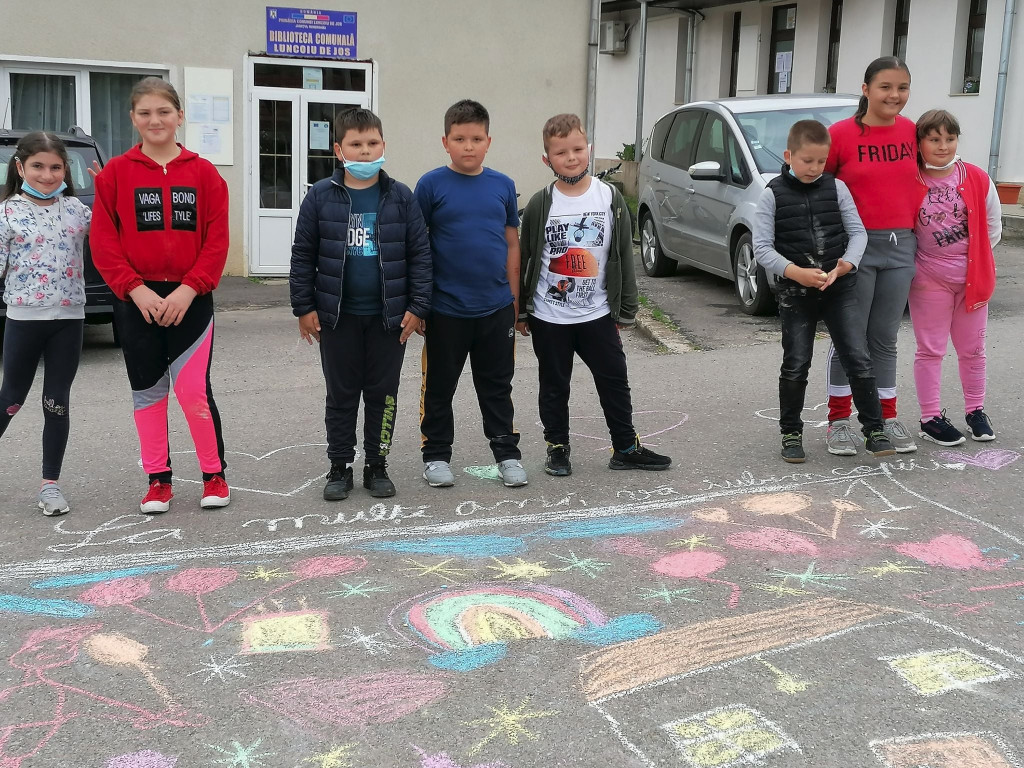 Acțiunea s-a desfășurat la Căminul Cultural din comună, în fața Bibliotecii Comunale Luncoiu de Jos. Au participat elevi, profesori, membrii comunității locale, reprezentanți ai administrației publice locale. Activitățile au constat în în desene pe asfalt, realizare de postere prin pictură și activitți sportive. Elevilor și preșcolarilor le-au fost inmânate diplome, plăsuțe cu cadouri și medalii, răsplătindu-le bucuria și puritatea pe care o emană, făcându-ne părtași atât pe noi, cadrele didactice, cât și pe membrii comunității locale. |