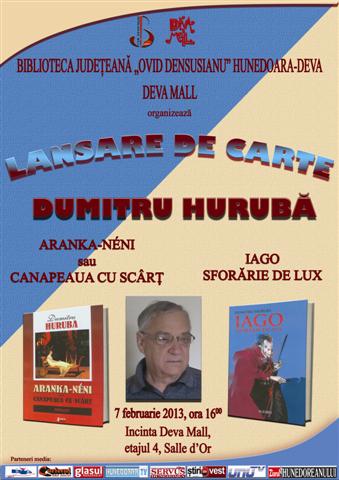7 februarie - Lansare volume "Iago - sforarie de lux" si "Aranka - Neni sau canapeaua cu scart", autor Dumitru HURUBA