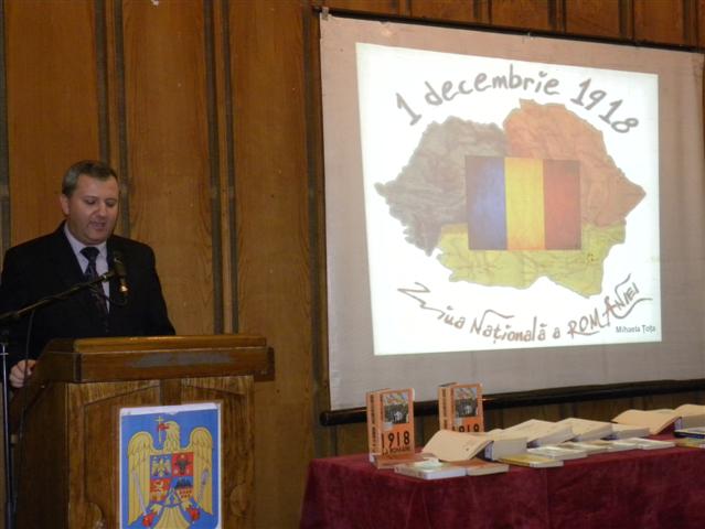 | Biblioteca Judeţeană "Ovid Densusianu" Hunedoara-Deva a dedicat si in acest an Zilei Nationale a Romaniei. In ziua de 28 noiembrie 2013, in Sala "Liviu Oros" a Centrului Cultural "Dragan Muntean" din Deva, cei prezenti in sala au asistat la o prezentare cu tema Unirea cea Mare si faurirea Romaniei Mari. |