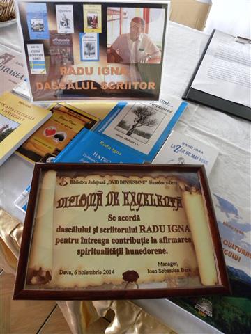 La inceputul lunii noiembrie l-am serbam pe scriitorul Radu Igna, dascal si intelectual de mare profunzime, cel care ocupa un loc aparte printre scriitorii hunedoreni. Sigur ca nu e usor sa cuprinzi in cateva cuvinte viata si creatia unui om, a unui scriitor harazit cu talent, cum este Radu Igna. Asa cum atat de elegant si de sugestiv marturiseste, cu o modestie si o discretie proprii marilor spirite, in viata lui nu s-a intamplat nimic deosebit: a scris niste carti… Dar aceste carti reprezinta o valoare, aceste carti au imbogatit literatura romana, aceste carti pot sta cu cinste alaturi de cartile oricarui prozator consacrat.