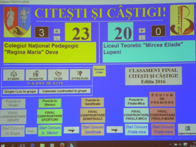 Concursul "Citesti si castigi!" - Sferturi de finala: |