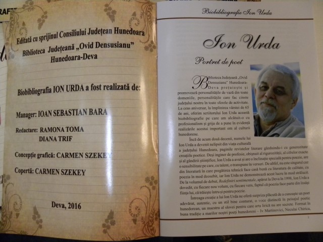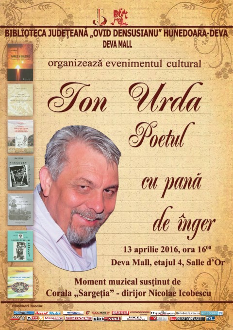 Ion Urda – poetul cu pana de inger" - eveniment cultural cu ocazia implinirii a 65 de ani a scriitorului si lansarea antologiei lirice "Granit indurerat", semnata de acesta |