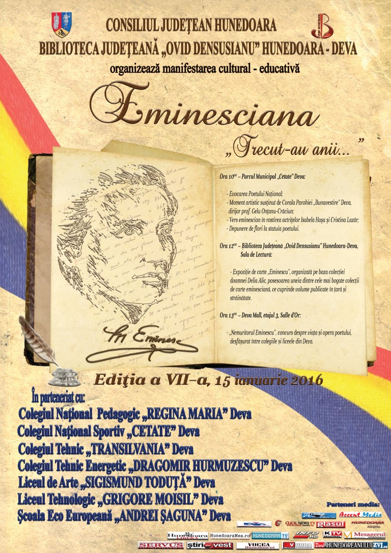 15 ianuarie 2016, Manifestari culturale dedicate personalitatii si creatiei lui Mihai Eminescu