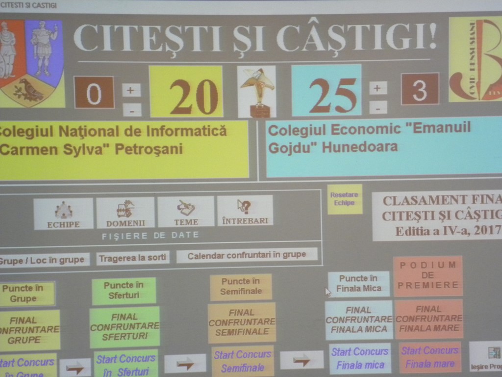 | Colegiul Naţional de Informatică "Carmen Sylva" Petroşani vs. Colegiul Econimic "Emanoil Gojdu" Hunedoara |