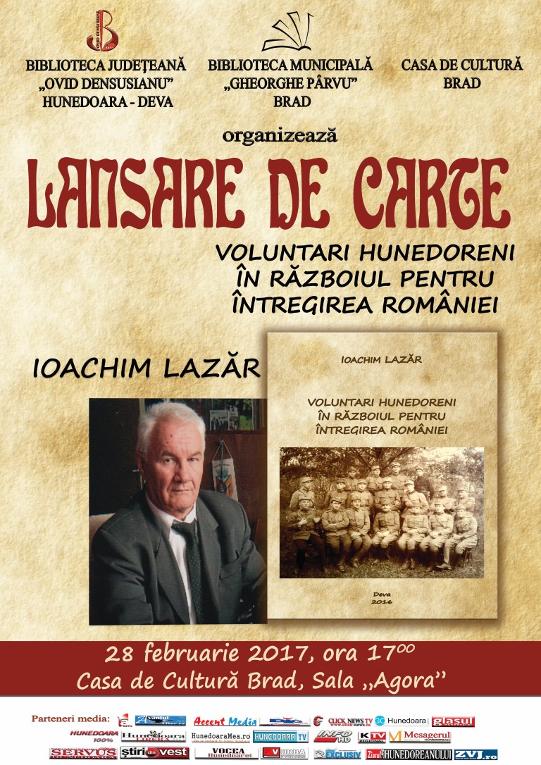 Lansarea cărţii istoricului dr. Ioachim Lazăr "Voluntari hunedoreni în războiul pentru întregirea României" |