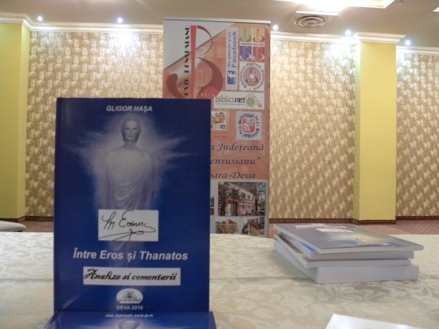 Cu acest prilej, dascălul, scriitorul şi publicistul Gligor HAŞA şi-a prezentat volumul de studii eminesciene "Între Eros şi Thanatos. Analize şi comentarii" |