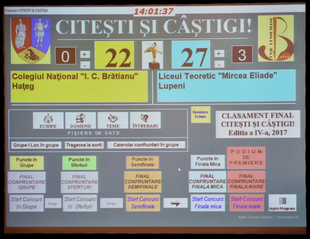 "Citeşti şi Câştigi!", ediţia anului 2017 este: Echipa Liceului Teoretic "Mircea Eliade" Lupeni | |||||||||||||||||||||||||||||