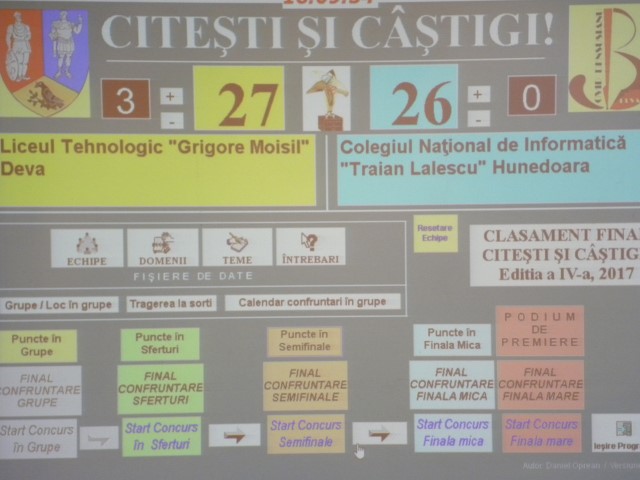 | Liceul Tehnologic "Grigore Moisil" Deva vs. Colegiul Naţional de Informatică "Traian Lalescu" Hunedoara |
