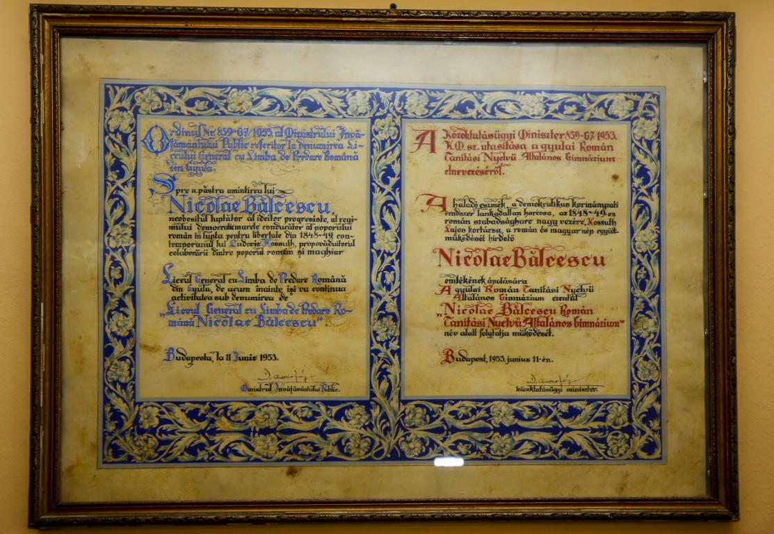 la Liceul "Nicolae Bălcescu" din Gyula păstrează aceste