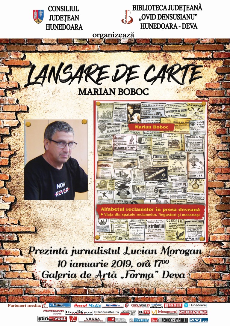 "Alfabetul reclamelor în presa deveană. Viaţa din spatele reclamelor. Negustori şi meseriaşi", al cărui autor este jurnalistul şi scriitorul Marian BOBOC |