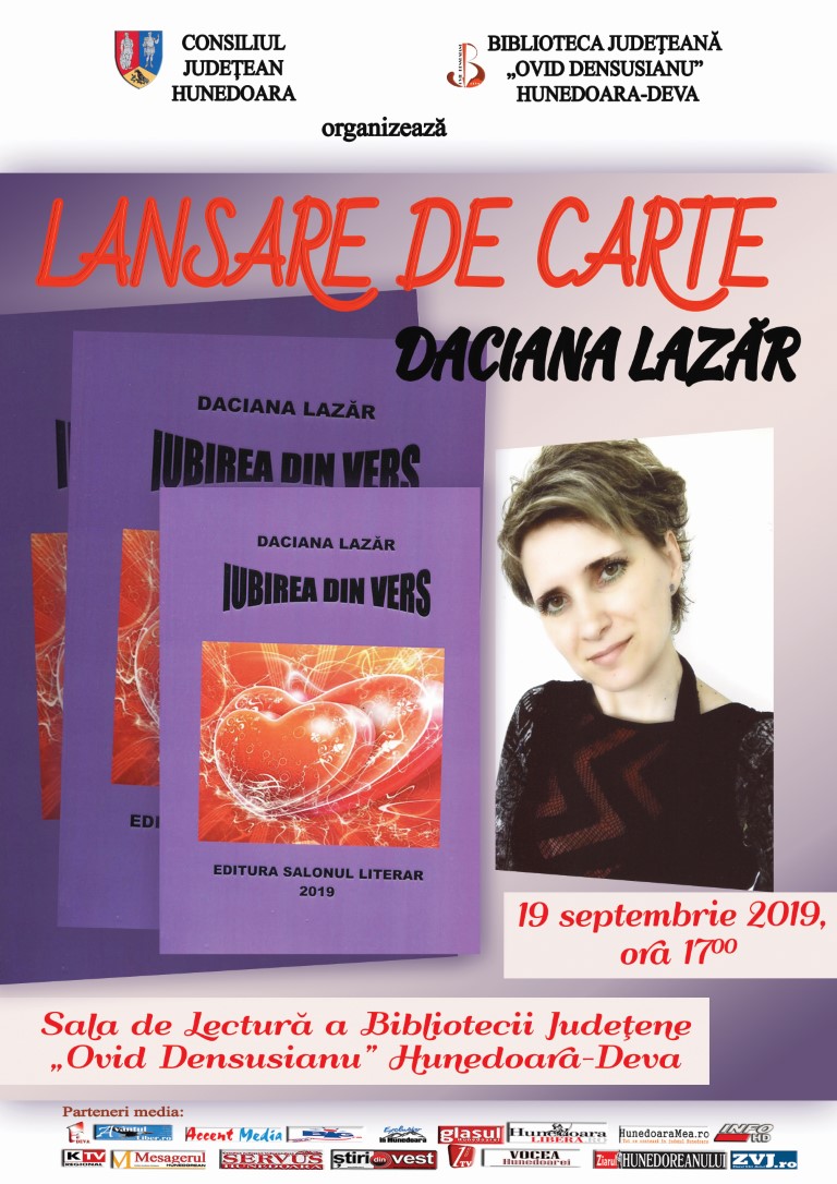 Va fi o întâlnire cu poeta Daciana LAZĂR care, cu acest prilej, îşi va lansa cel de-al doilea volum de versuri, intitulat "Iubirea din vers" |