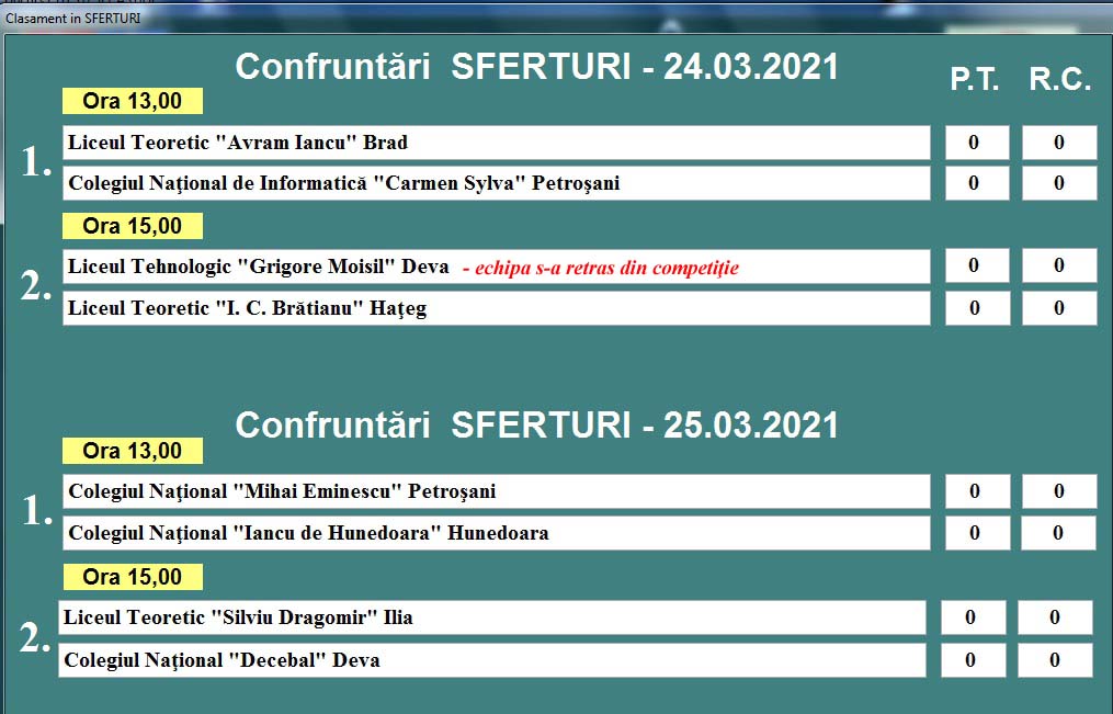 Confruntarea nr. 4 din 16.03.2021 - ora 11,00 |