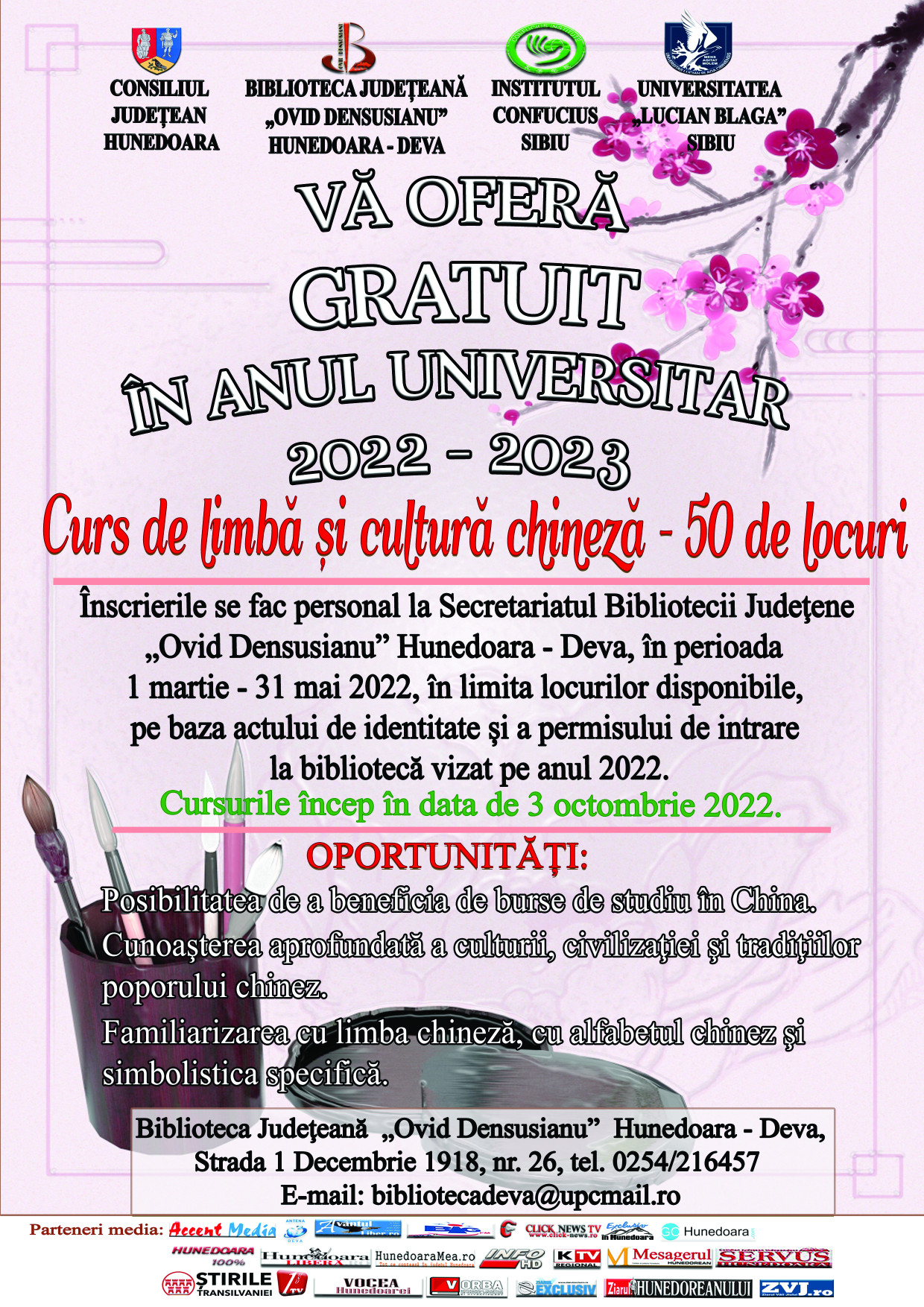 Înscrieri la Cursul de limbă și cultură chineză. |