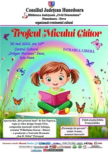 | 30.05.2025, ora 1000 , Sala Mare a Centrului Cultural Drăgan Muntean Deva – eveniment cultural Trofeul Micului Cititor. |