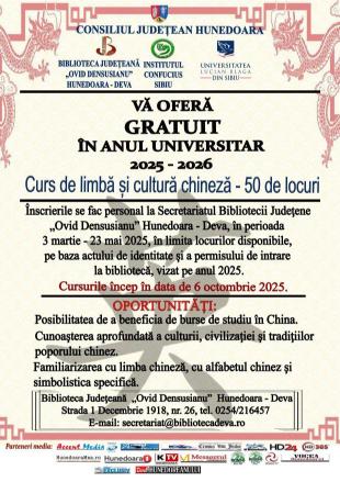 | 22.05.2025 - 23.05.2025 , Consiliul Județean Hunedoara, Sala de Ședințe și Sala Mică, Biblioteca Județeană „Ovid Densusianu” Hunedoara - Deva, Sala de lectură – Conferința Internațională Între local și european. 240 de ani de la martirajul lui Horea, Cloșca și Crișan. |