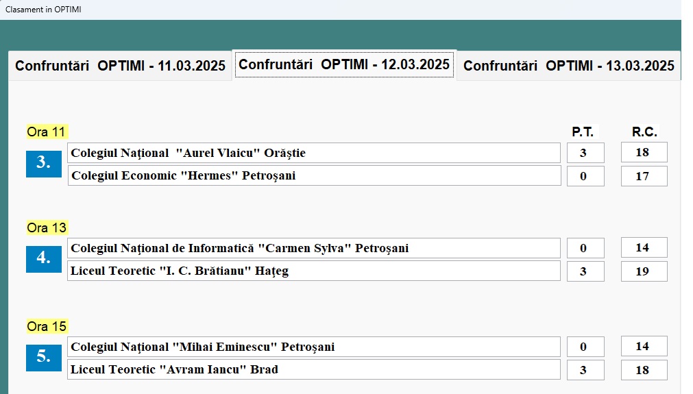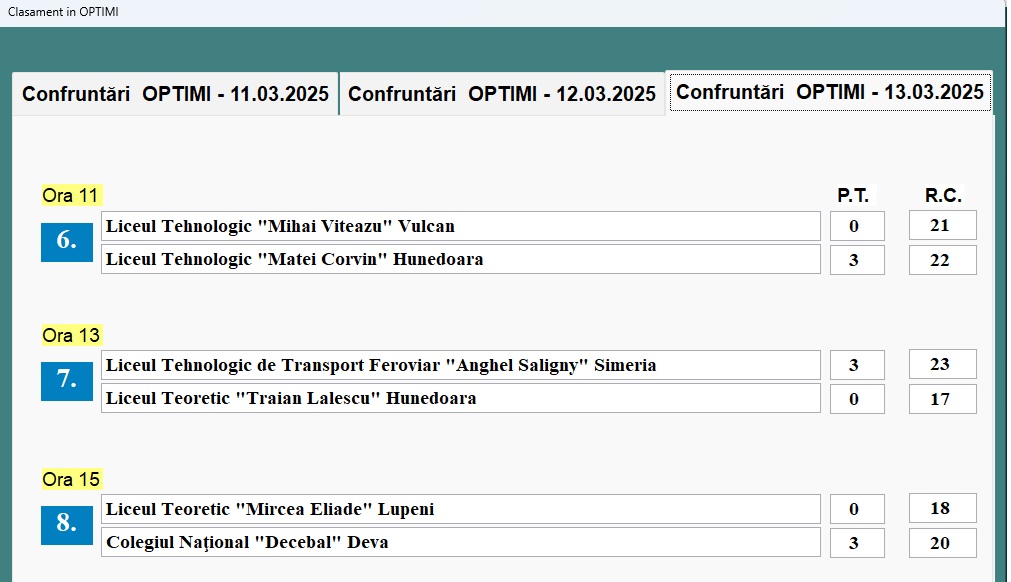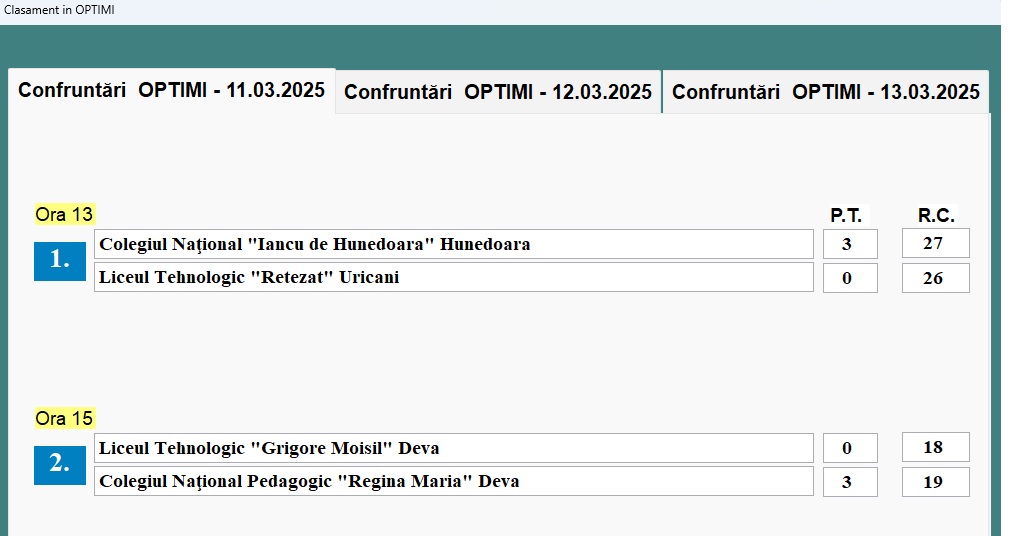 | FAZA OPTIMI DE FINALĂ | |