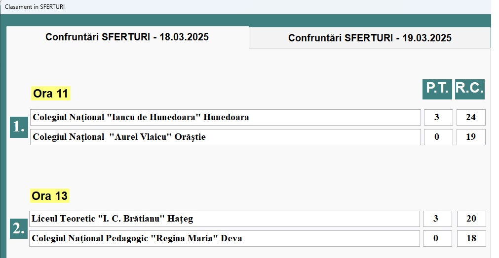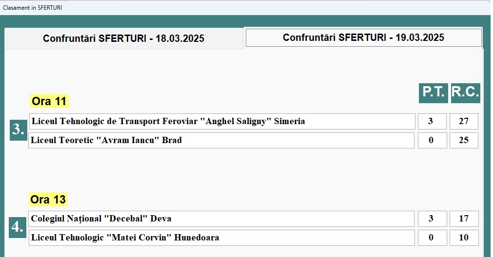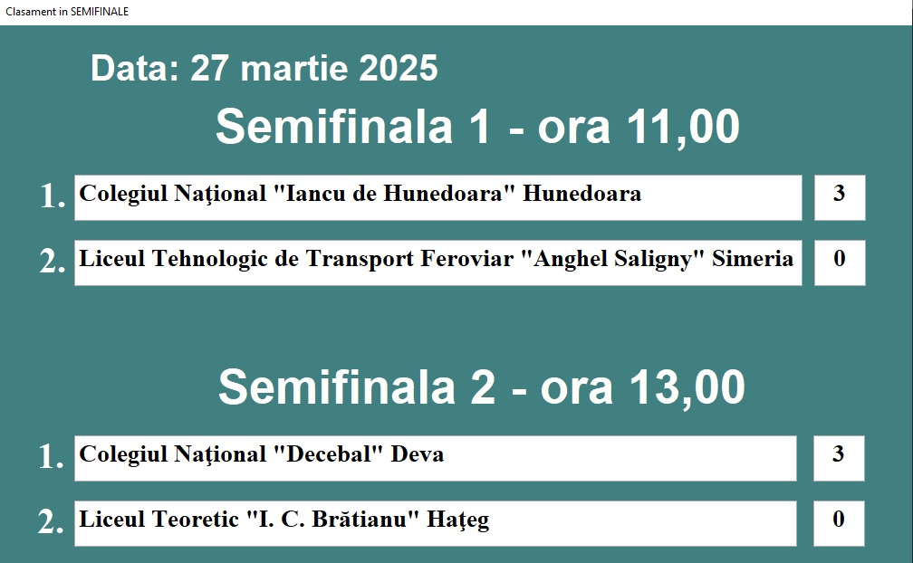 | FAZA SEMIFINALE | |