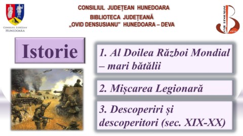 CONSILIUL JUDEȚEAN HUNEDOARA BIBLIOTECA JUDEȚEANĂ „OVID DENSUSIANU” HUNEDOARA – DEVA Istorie 1. Al Doilea Război Mondial – mari bătălii 2. Mișcarea Legionară 3. Descoperiri și descoperitori (sec. XIX-XX)