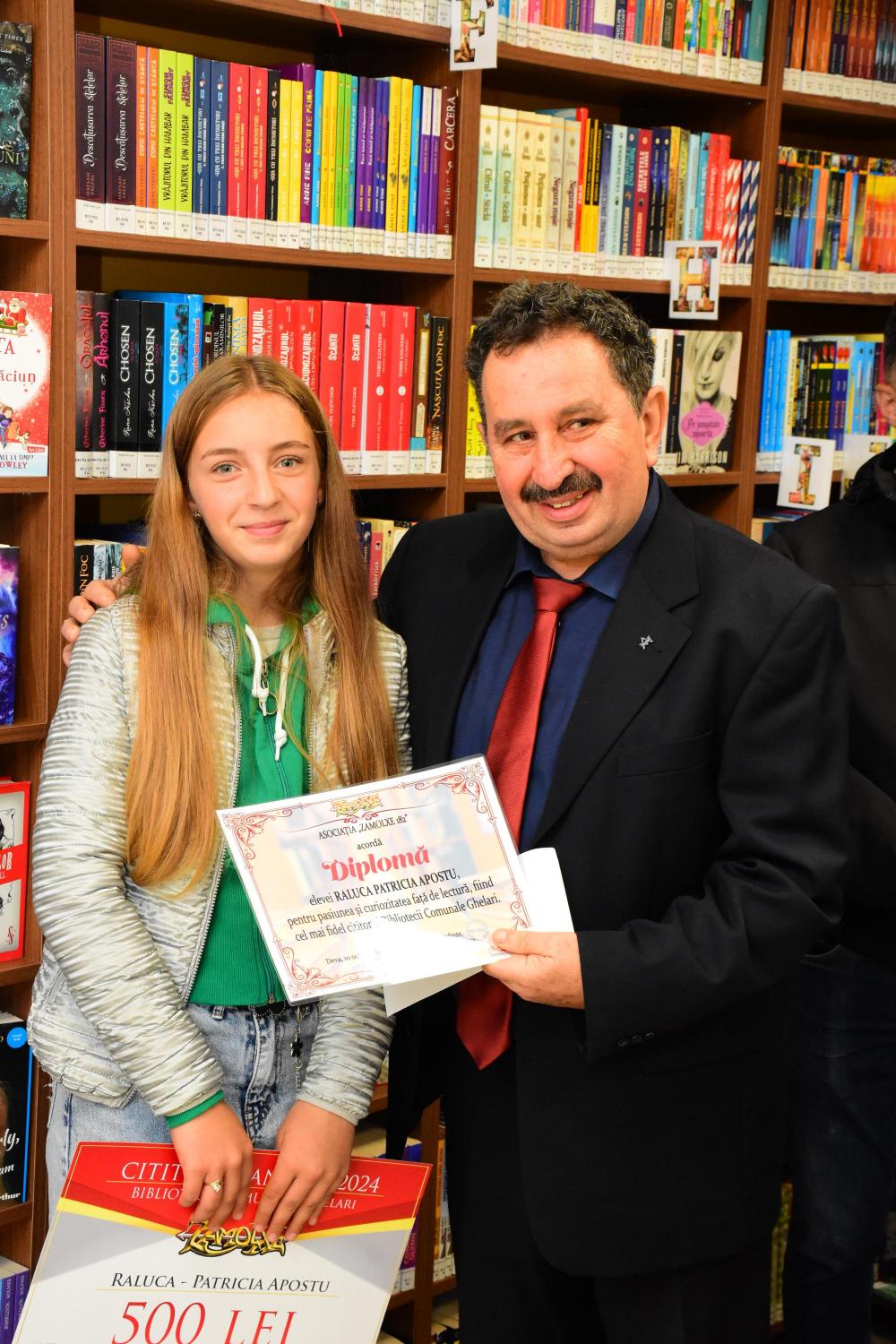 10.10.2025, ora 1000, Secția de Împrumut Carte pentru Copii – premierea celui mai fidel cititor al Bibliotecii Comunale Ghelari de către Asociația Zamolxe 182 Deva. |