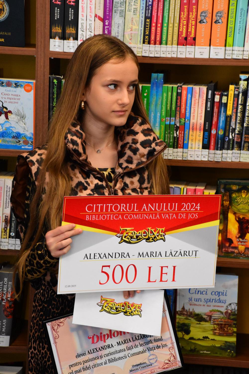 12.09.2025, ora 1000, Secția de Împrumut Carte pentru Copii – premierea celui mai fidel cititor al Bibliotecii Comunale Vața de Jos. |