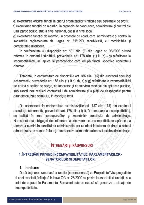 1. ÎNTREBĂRI PRIVIND INCOMPATIBILITĂȚILE PARLAMENTARILOR -