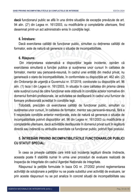 GHID PRIVIND INCOMPATIBILITĂȚILE ȘI CONFLICTELE DE INTERESE EDIȚIA 2024
