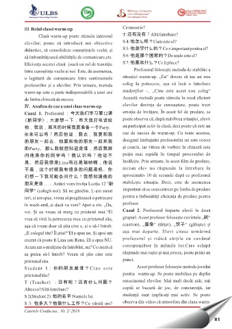 S 3: 他多大?他做什么工作?Ce vârstă are? observa din video că atmosfera din clasa warm-