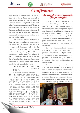 Biblioteca Județeană „Ovid Densusianu” Hunedoara-Deva Confesiuni Am îndrăznit să visez…. și am reușit- China, un vis împlinit Caietele Confucius, Nr. 4/2019 36