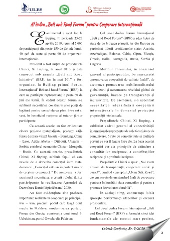 Internațional” Belt and Road Forum” (BRF), la globalizării și accentuarea nivelului global de