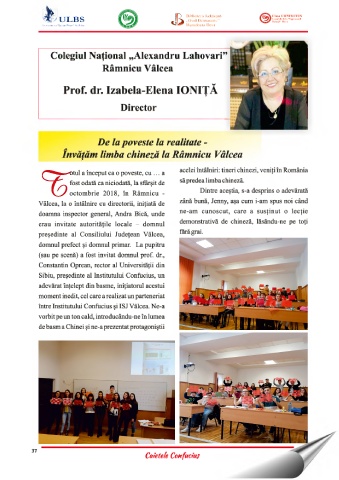 între Institutului Confucius si ISJ Vâlcea. Ne-a