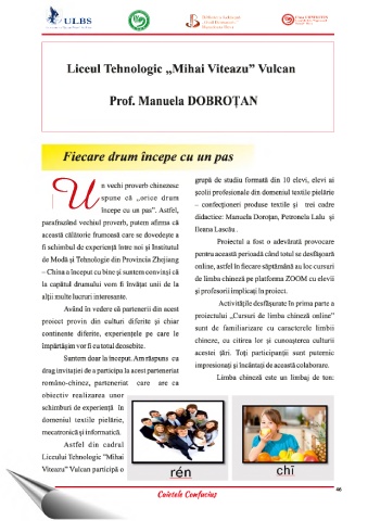 de limba chineză pe platforma ZOOM cu elevii