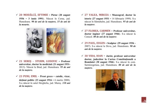 20 MODÂLCĂ, EFTIMIE - Pictor (20 august 27 VALEA, MIRCEA - Muzeograf, doctor în