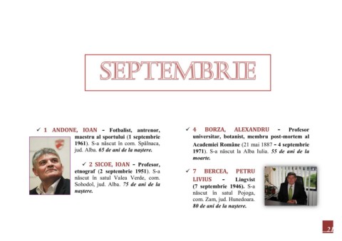 1 ANDONE, IOAN - Fotbalist, antrenor, 4 BORZA, ALEXANDRU - Profesor