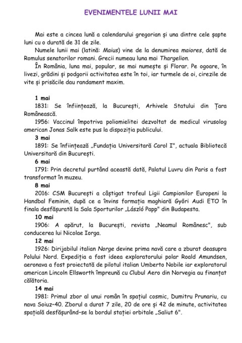EVENIMENTELE LUNII MAI
