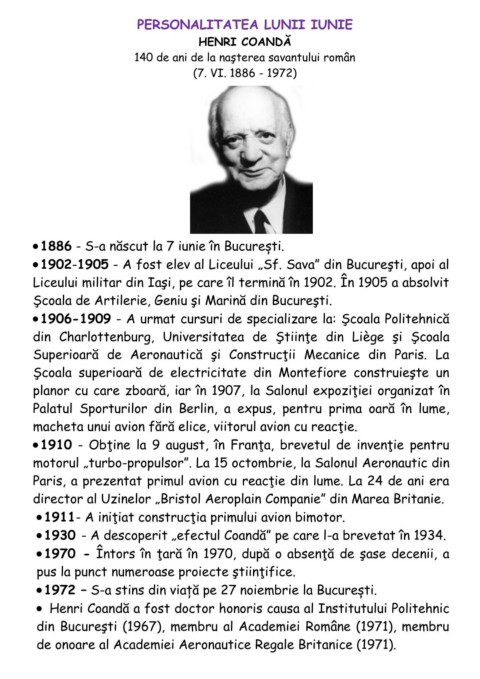 Henri Coandă a fost doctor honoris causa al Institutului Politehnic
