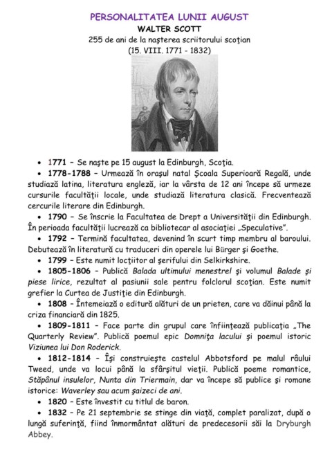 255 de ani de la naşterea scriitorului scoţian