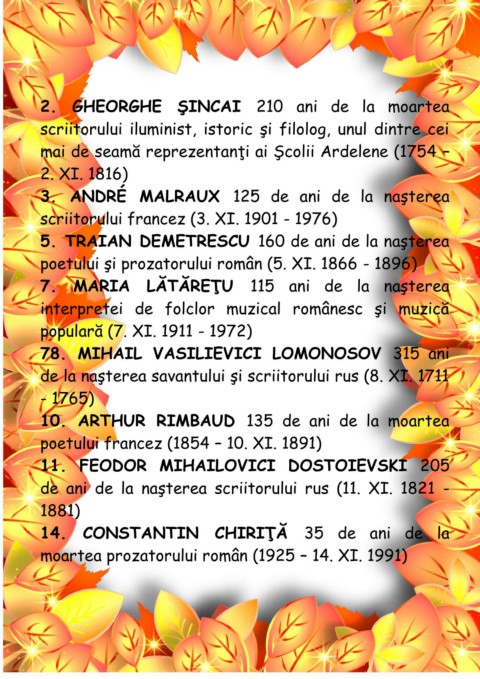de ani de la naşterea scriitorului rus (11. XI. 1821 -