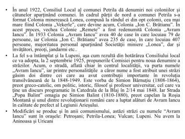 • În anul 1922, Consiliul Local al comunei Petrila dă denumiri noi coloniilor şi
