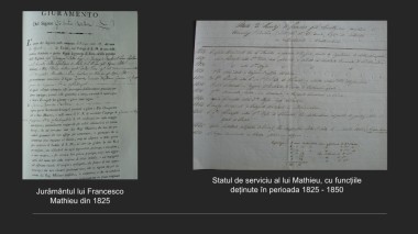 Statul de serviciu al lui Mathieu, cu funcțiile Jurământul lui Francesco deținute în perioada 1825 - 1850 Mathieu din 1825