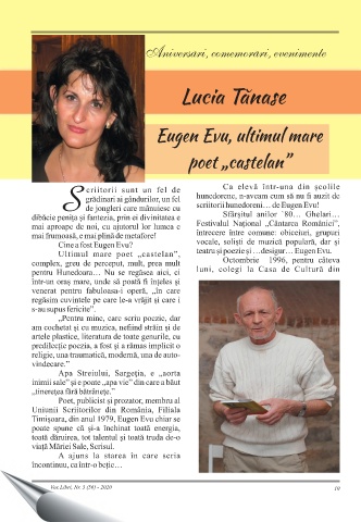 Aniversari, comemorari, evenimente , , Lucia Tănase Eugen Evu, ultimul mare poet „castelan” Vox Libri, Nr. 3 (56) - 2020 10