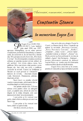 Aniversari, comemorari, evenimente , , Constantin Stancu In memoriam Eugen Evu Vox Libri, Nr. 3 (56) - 2020 6