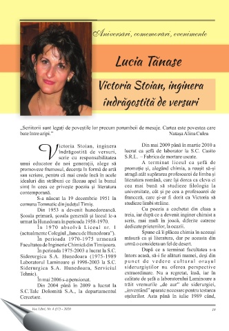 Aniversari, comemorari, evenimente , , Lucia Tănase Victoria Stoian, inginera îndrăgostită de versuri Vox Libri, Nr. 4 (57) - 2020 10