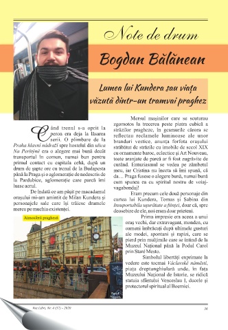 Note de drum Bogdan Bălănean Lumea lui Kundera sau viața văzută dintr-un tramvai praghez Atmosferă pragheză Vox Libri, Nr. 4 (57) - 2020 36