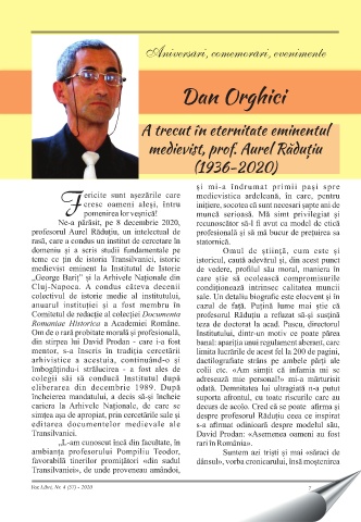 Aniversari, comemorari, evenimente , , Dan Orghici A trecut în eternitate eminentul medievist, prof. Aurel Răduțiu (1936-2020) Vox Libri, Nr. 4 (57) - 2020 7